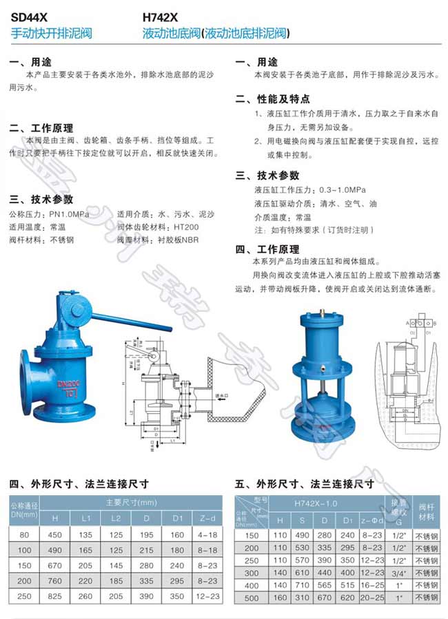 安裝在各類(lèi)沉淀池的底部壁外,用以排除池底的泥沙及污物。